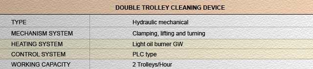 The GS-DTCD Single Trolley Cleaning Device has been specifically designed for efficient cleaning of two trolleys per cycle. It is specially efficient in cleaning the perforated plates located at the bottom of the trolley where all the rubber residues stick and clog the perforated holes.