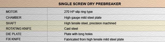 The GS-SDP Single Screw Dry Prebreaker is designed to be operated for the size reduction of special grades of rubber. It reduces large lumps or slabs into smaller pieces, under the hardest working condition.
