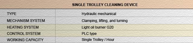 The GS-STCD Single Trolley Cleaning Device has been specifically designed for efficient cleaning of one trolley per cycle. It is specially efficient in cleaning the perforated plates located at the bottom of the trolley where all the rubber residues stick and clog the perforated holes.The advantages of the Single Trolley Cleaning Device :
